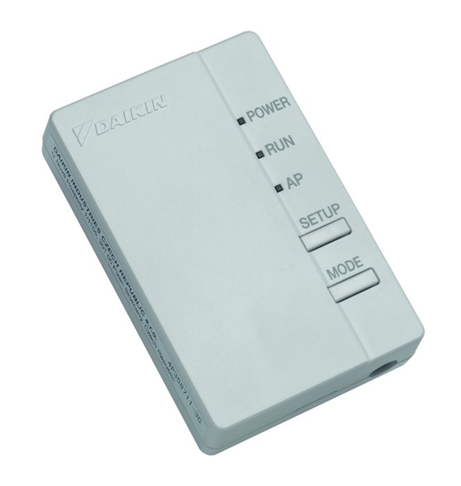 Daikin (Дайкин) BRP069B43 представляет собой адаптер для подключения климатической техники к беспроводной локальной сети. Подключив данный контроллер к системе кондиционирования, пользователь сможет с помощью компьютера, планшета или смартфона управлять работой одного или нескольких (если это мультисплит-система) внутренних блоков кондиционера. Помимо непосредственно управления работой, это устройство позволяет выполнять также удаленную диагностику отдельных компонентов системы кондиционирования с последующим отображением в приложении всей информации о возникшей проблеме.