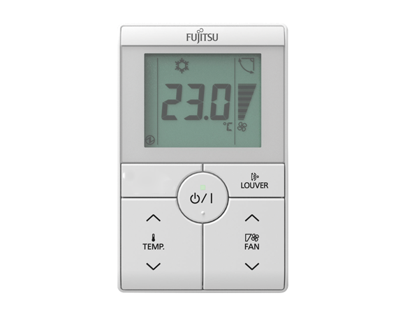 Fujitsu (Фуджитсу) UTYRНRY – пульт управления проводной упрощенный предназначен для переключения температуры воздуха, скорости вентилятора. Аксессуар отличается компактными размерами и оснащен цифровым монохромным дисплеем.