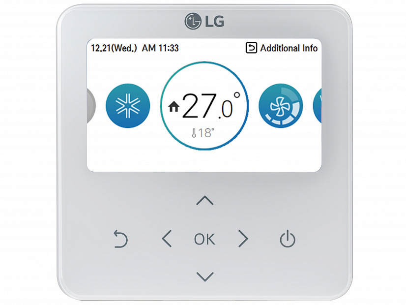 Проводные пульты управления бренда LG позволяют удобно управлять параметрами работы систем кондиционирования. Устройства обладают большим дисплеем, на котором отображается информация о состоянии оборудования. Широкие функциональные возможности аксессуаров помогают с высокой точностью выбирать поддерживаемые условия микроклимата в каждом отдельно взятом помещении.