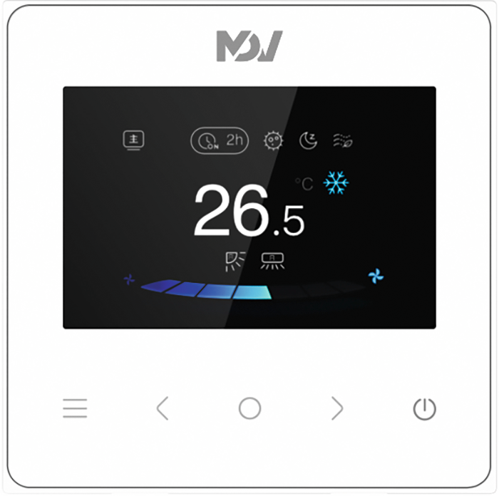 Mdv (Мдв) WDC3-86T представляет собой настенный пульт управления, выполненный в лаконичном дизайне классического белого цвета. Он имеет большой дисплей и сенсорные клавиши. Позволяет управлять как индивидуально одним внутренним блоков, так и сразу группой (можно подключать до 16 блоков).