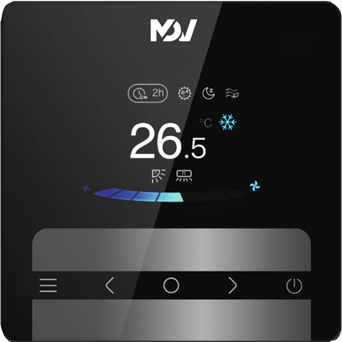 Mdv (Мдв) WDC3-86T-B – это проводной пульт управления настенного монтажа, который выполнен в стильном черном цвете и имеет глянцевый корпус, плавно переходящий в дисплей с сенсорными клавишами. Поддерживает как индивидуальное управление блоком, так и групповое (позволяет подключать до 16 внутренних блоков).