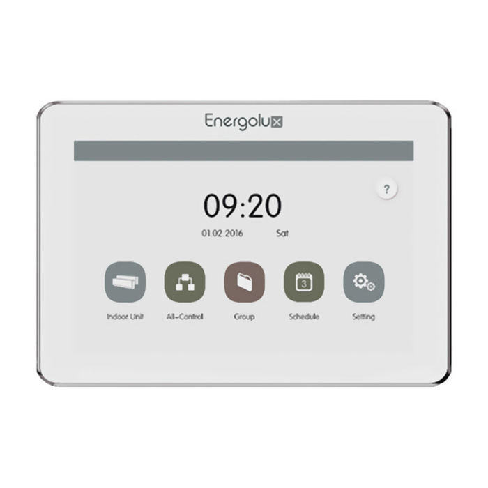 Аксессуар ENERGOLUX (Энерголюкс) SCC54G1 - это центральный пульт управления с сенсорным дисплеем (4,3") с выходом на 32 внутренних блока и 16 систем. Пульт устанавливается в служебном помещении и подсоединяется к оборудованию проводом, предназначенным для передачи данных между объектами.