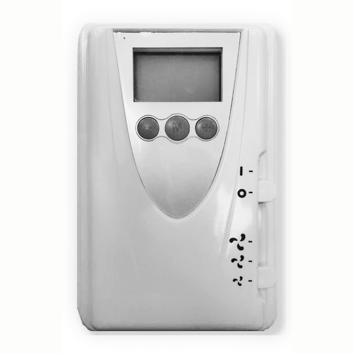 Aeronik (Аэроник) WK-110PAO представляет собой настенный электромеханический термостат. Данное устройство позволит управлять всеми функциями и режимами фанкойла любого типа – при помощи этого пульта пользователь может изменять режим работы канальных фанкойлов (на охлаждение или обогрев), задавать желаемую температуру подаваемого в помещение воздуха, а также регулировать скорость вращения вентилятора. Устройство оснащено информативным жидкокристаллическим дисплеем, на котором понятными символами отображаются все текущие настройки оборудования и отображаются все неполадки, возникшие во время работы.