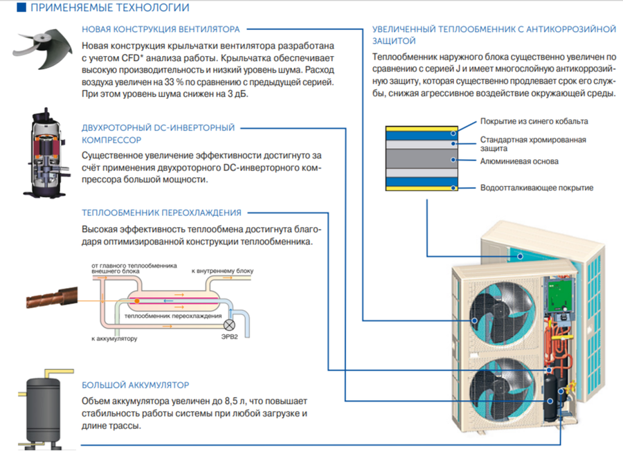 - Особая система распределения хладагента позволяет продлить общую протяженность трассы до 180 м