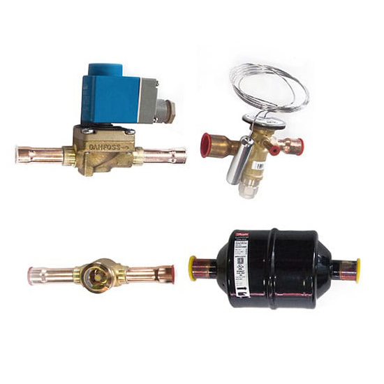 Модель комплекта обвязки Dantex (Дантекс) 35,4кВт (5/8") 147х5027 предназначена для совместной работы с компрессорно-конденсаторным блоком модели DK-35WC/SF или DK-70WC/SF производства компании Dantex. В комплектацию данного набора входит фильтр осушитель DML 165s, смотровое стекло SGP 16s N и терморегулирующий вентиль ТРВ - TGEL 13. Фильтр-осушитель ответственный за своевременное удаление образуемой в процессе работы воды и твердых частиц из холодильного контура. Смотровое стекло позволяет проводить диагностику холодильного контура ККБ без необходимости разбирать отдельные элементы системы. При помощи терморегулирующего вентиля пользователь сможет плавно регулировать производительность компрессорно-конденсаторного блока.