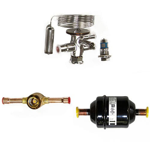 Dantex (Дантекс) 7кВт (3/8") 147х5035 – это комплект обвязки, который используется для запуска в эксплуатацию компрессорно-конденсаторного блока DK-07WC/F производства компании Dantex. В комплектацию данного набора входит смотровое стекло SGP 10s N, фильтр осушитель DML 053s, клапанный узел и терморегулирующий вентиль модели ТРВ - TGEL 3.5 (TUAE). При подключении ККБ не стоит пренебрегать использованием никаким из данных компонентов, поскольку каждый из них необходим для обеспечения бесперебойной, максимально эффективной и долгой службы компрессорно-конденсаторного блока.