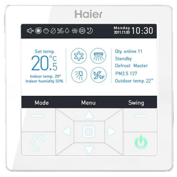 Проводной пульт управления Haier (Хаер) YR-E16A отличается современным дизайном и хорошо просматриваемым дисплеем. С помощью этого миниатюрного оборудования пользователь не только может отрегулировать режим работы кондиционера, но и просмотреть его текущие конфигурации. Устройство интуитивно удобно в эксплуатации.